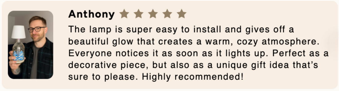 - Install the lamp: Insert it into the bottle and make sure it’s stable.